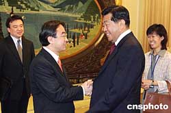 賈慶林向客人介紹了中國的經濟社會發展情況。他表示,歡迎更多的日本議員到中國訪問,加強彼此的了解與合作,共同為促進中日友好以及地區的和平與發展而努力。