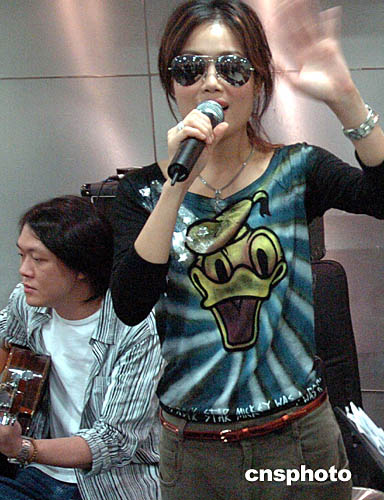 香港歌星容祖兒,十月十三日在來到九龍國際展貿中心,進行《MTV亞洲之聲--容祖兒》彩排,并接受傳媒訪問。中新社記者:錢興強