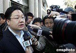 出席中超投資人聯席會議的大連實德俱樂部董事長徐明會后接受媒體采訪。
