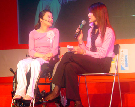 中新網(wǎng)10月27日電 據(jù)華西都市報報道,25日晚,桑蘭出現(xiàn)在復旦大學參加“2004桑蘭校園行”活動,與高校學子一起對話奧運,為2008年的北京喝彩。這是繼北京、廣州之后,桑蘭校園行的第三站。桑蘭是個絕對堅強的人,坐在輪椅上的她沒在外人面前露出一點沮喪的表情。