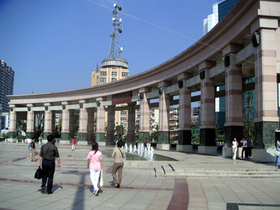廣場整體上為北高南低、西高東低,強調其向水性和向陽性。人們既可以在這里聽音樂會,又可以在林間小憩、水中嬉戲,還可以在地下商場購物,了解蕪湖的人文歷史、廣場與大、小鏡湖、中山路步行街一起,組成了一個集觀光、休閑、購物、娛樂于一體的城市中心旅游區。