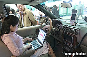 五月中旬,在北京科技周展覽會(huì)上,一種可在移動(dòng)的汽車上完成全套辦公業(yè)務(wù)的“車載辦公室”向觀眾亮相。“車載辦公室”有無(wú)線網(wǎng)絡(luò)、衛(wèi)星導(dǎo)航、傳真打印等各種配置。中新社記者:史利