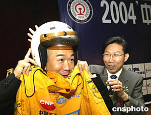 中國鐵路汽車拉力駕駛技能賽五月二十日在北京舉行的新聞發布會,比賽形象大使、著名演員張國立試穿車手“行頭”。拉力賽將于六月十日至二十六日舉行,參賽人員全部是鐵路系統的員工和公安干警。比賽起點為北京,終點為烏魯木齊,將途經鄭州、西安、蘭州、嘉峪關、西寧、青海湖、吐魯番等地。中新社記者:趙振清