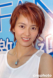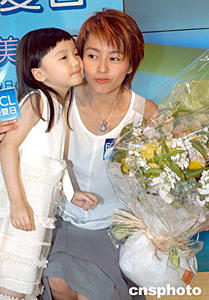 歌星梁詠琪5月29日在香港出席其代言化妝護膚品《FANCL激白迎夏日》宣傳展覽會,獲小女孩送上鮮花,梁詠琪與她碰面以表謝意。作者:鄧慶樂