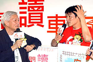 香港明星劉德華,六月五日出席九廣鐵路公司與香港電臺特別舉行的“閱讀車廂”啟程禮。圖為劉德華與學生一起參加該活動啟程禮。 作者:錢興強