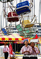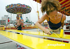 世界最大移動游樂場環球嘉年華將于七月二日在北京開放。正在調試安裝的各種游樂設施引得在此打工的中國姑娘驚喜連連。中新社記者:鄭萍萍