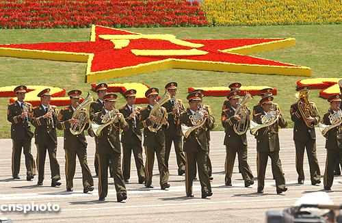 8月1日,香港回歸七年來,駐港部隊今天首次公開閱兵,包括政府高官、社會名流和眾多第二屆立法會議員在內的逾一萬五千名香港市民,在新界石崗軍營親睹了陸?杖娪馊Ч俦鴧⒓拥年犃胁傺。