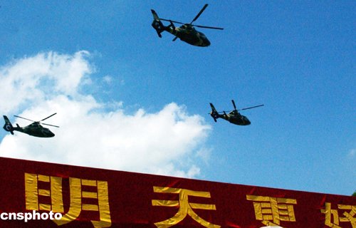 駐港部隊直升機編隊接受檢閱。作者:錢興強