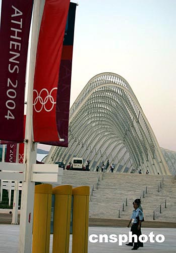 當地時間8月3日晚,雅典奧運會體育中心在夕陽映照顯得別具一格。中新社記者:任晨鳴