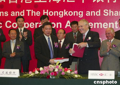 中新社北京八月六日電(記者李鵬)中國最大的股份制商業(yè)銀行交通銀行六日與香港上海匯豐銀行在北京簽署戰(zhàn)略合作協(xié)議。匯豐銀行以現金入股交通銀行,入股比例為百分之十九點九,接近銀監(jiān)會規(guī)定的百分之二十上限,這是迄今為止國際著名金融機構入股中國商業(yè)銀行的最大宗交易。
