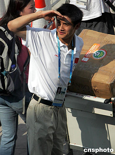 中國奧運代表團團長袁偉民率大軍抵達雅典。中新社記者:任晨鳴