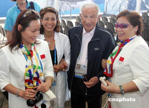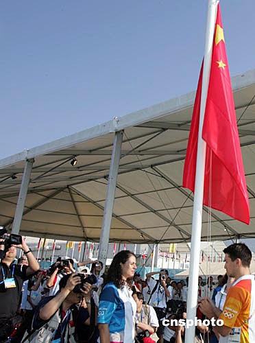 中新社雅典八月九日電 雅典今天天氣晴朗,北京時間下午兩點,中國奧運代表團升旗儀式在奧運村內準時舉行,前任國際奧委會主席薩馬蘭奇和中國代表團的一百多名團員參加了儀式。