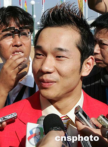 當地時間八月九日上午,參加雅典奧運會的中國男子舉重六十二公斤級名將樂茂盛向記者表示,他的時尚發型可以幫助他樹立堅強信念。中新社記者:毛建軍