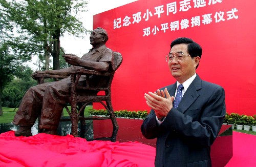 在揭幕儀式上,胡錦濤表示,鄧小平為中國革命、建設、改革事業建立的偉大功勛將永載史冊,他留下的寶貴精神財富將永遠激勵我們前進。上午九時十五分,胡錦濤親手揭下覆蓋在鄧小平銅像上的紅綢。一時熱烈的掌聲雷動。