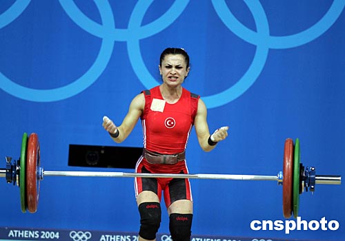 當地時間8月14日晚,雅典奧運會舉重首日賽事展開,被視為中國“囊中之物”的女子四十八公斤級金牌,被土耳其選手TAYLAN NURCAN橫刀搶走。中新社記者:任晨鳴