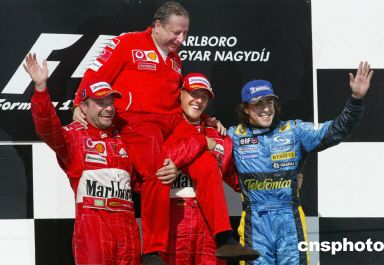中新網8月16日電 大舒馬赫在匈牙利汽車錦標賽中再奏凱歌,成為了歷史上第一個在同一賽季12次得勝的F1賽車手。