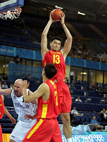 下半場開始后姚明愈發神勇,一人包攬中國隊開局后的九分。然而過分依靠姚明使得中國隊進攻點單一,新西蘭抓住機會縮小了比分差距。中國隊五十一比四十五領先結束第三節。姚明此節一人竟拿下全隊本節所得二十二分中的十九分。