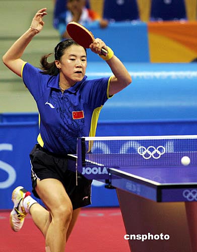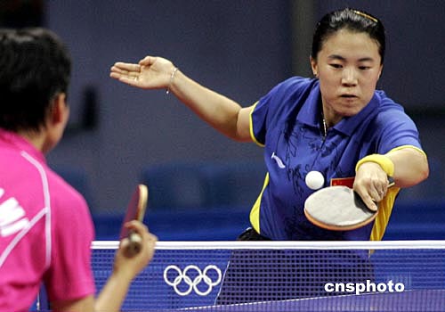 雅典當(dāng)?shù)貢r(shí)間8月17日晚,在奧運(yùn)乒乓球女單第三輪比賽中,中國(guó)選手王楠以四比二戰(zhàn)勝韓國(guó)選手金云美,晉級(jí)女單十六強(qiáng)。中新社記者:張煒
