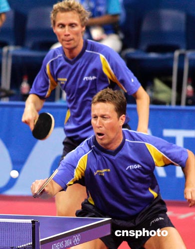 中新社雅典八月十八日電 在近期的一系列比賽中戰(zhàn)績最佳的中國乒乓球男雙組合王皓/孔令輝今天出人意料地在爭奪奧運會八強席位的比賽中敗在了英雄遲暮的瑞典老將瓦爾德內爾、佩爾森拍下,爆出一大冷門。