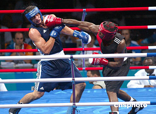在當(dāng)?shù)貢r(shí)間8月18日舉行的男子91公斤重量級(jí)比賽中,尼日利亞和阿拉伯?dāng)⒗麃喒埠蛧?guó)選手展開(kāi)激烈搏斗。
