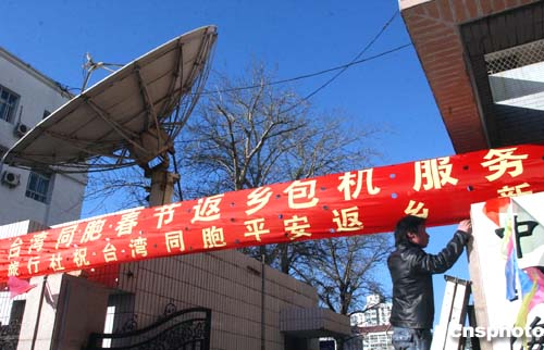 圖:北京的旅行社為臺胞春節包機開設服務站