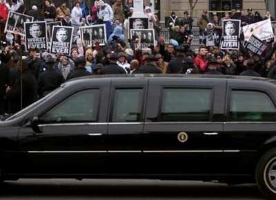 對于就職典禮,反布什人士各出其謀:有人選擇放大假遠走高飛,見不到就職典禮,眼目清凈;也有人選擇成群結隊涌入華盛頓,計劃當布什的車隊經過賓夕法尼亞大道時,集體轉身背對車隊,給布什作出“象征式”的反對。