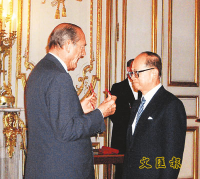 李嘉誠獲法榮譽軍團司令勛章 希拉克親自頒授(圖)