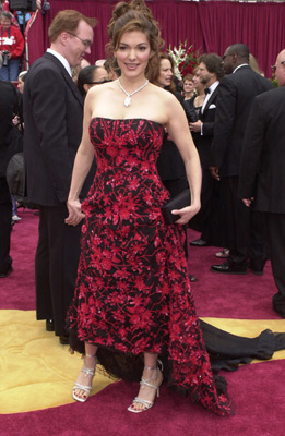 身著阿瑪尼時(shí)裝的勞拉·哈林(Laura Harring)出席在第74屆奧斯卡頒獎(jiǎng)禮上。當(dāng)時(shí)她展示一對(duì)價(jià)值上百萬(wàn)美元的白金鉆石孔錐形高跟鞋。這雙鞋子由設(shè)計(jì)師斯圖亞特·威特門(mén)和白金協(xié)會(huì)共同完成。哈林還戴了一條價(jià)值兩千七百萬(wàn)元的項(xiàng)鏈。