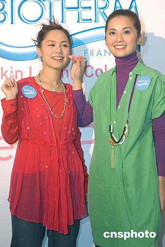 人氣組合Twins 2月1日在香港出席化妝品牌BIOTHERM記者會,加入為該品牌化妝品Glossy Shine雙重光效唇彩代言。作者:鄧慶樂