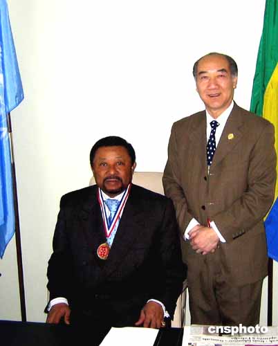 當地時間二月七日,第五十九屆聯大主席、加蓬外長讓·平(左)在聯合國辦公室接受旅美中國溫州鄉親章愛龍(右)贈送的“溫州之子”紀念牌,并向中國鄉親恭賀新年。據悉,讓·平的父親自中國溫州旅居加蓬,而他本人至今與溫州親人保持聯絡。作者:艾生