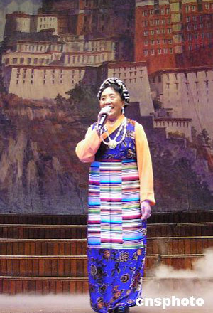 著名歌唱家才旦卓瑪在悉尼放聲高歌《北京的金山上》。2005年悉尼華人春節歌舞晚會11日在悉尼市政廳隆重舉行,中國民族藝術團精彩絕倫的表演,為澳洲華僑華人帶來新春的祝福和歡樂。30名藏族優秀藝術家的表演,贏得陣陣掌聲。晚會結束時,中國駐悉尼總領事(大使銜)邱紹芳和悉尼僑領登上舞臺,與演員們親切握手。作者:劉雨生