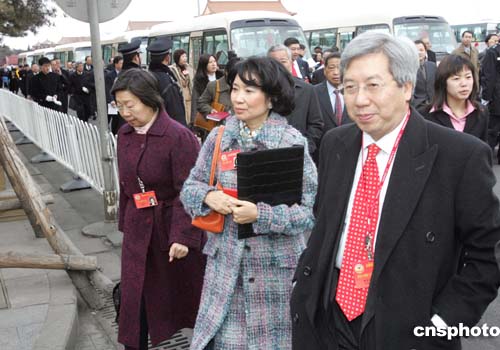 全國政協(xié)十屆三次會(huì)議三月三日下午在北京人民大會(huì)堂開幕,出席會(huì)議的方黃吉雯、李家祥等香港委員步入會(huì)場。作者:毛建軍