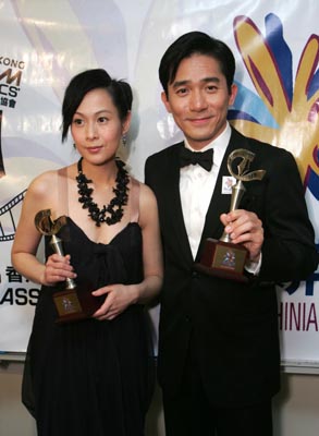 中新網3月7日電 據香港大公報報道,“第十屆金紫荊獎頒獎典禮”昨晚圓滿舉行,是晚共頒發九個獎項,其中大熱門《功夫》及《2046》各獲兩個獎平分秋色,而最佳男主角則由梁朝偉憑《2046》奪得,最佳女主角就由劉若英憑《天下無賊》獲得。這次已是“偉仔”第三次奪得金紫荊影帝獎。