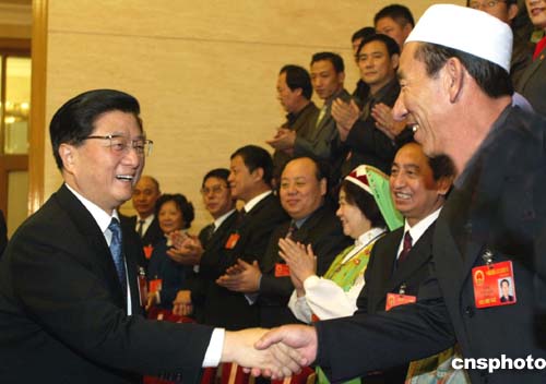 圖:黃菊和寧夏回族代表握手