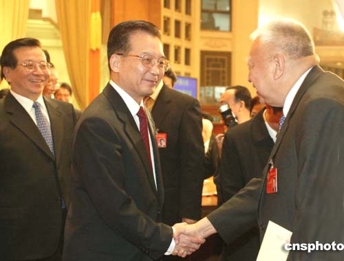 三月十二日,全國政協十屆三次會議在北京閉幕。國務院總理溫家寶、國家副主席曾慶紅向新增選的全國政協副主席董建華表示祝賀。作者:廖文靜