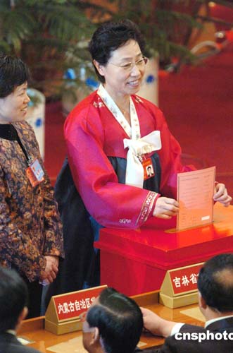 十屆全國人大三次會議第四次全體大會三月十三日在北京人民大會堂舉行,人大代表投票選舉中華人民共和國中央軍事委員會主席。作者:陳文