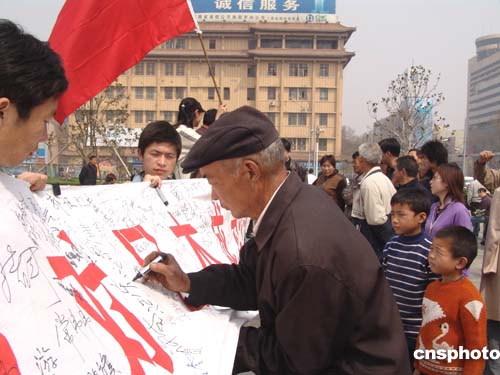 4月2日下午,洛陽數千網民自發來到東周王城廣場舉行反日“入常”簽名活動,簽名現場群眾情緒激昂,爭先發表“堅決反對日本成為聯合國常任理事國”演講,表達國人心聲。不少學生、路過的市民和游客也主動上前簽名支持,人們紛紛表示:我們熱愛祖國,熱愛和平,決不能容忍日本篡改歷史事實,必須堅決粉碎日本軍國主義復活的野心。作者:鞏衛東