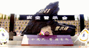 據(jù)介紹,該礦難警示碑位于“一一·二八”遇難礦工公墓正前方,由兩塊堅(jiān)實(shí)的煤炭雕塑構(gòu)成了一個(gè)巨大的“人”字坐落在花崗巖的碑座上。碑座的正中是一個(gè)黃銅色的礦工帽。碑座前面鐫刻八個(gè)醒目大字“安全為天警鐘長鳴”,背面銘刻著在此次礦難中遇難的一百六十六名礦工的名字。碑的后面,是一排排翠柏環(huán)繞的遇難礦工墓碑。