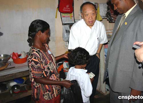 圖:中國外長李肇星向斯里蘭卡災民捐款
