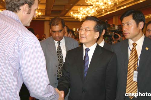 一進入會場,溫家寶逐一與各媒體人士握手。他說,“我是用笑臉來歡迎各位記者的,我確實很高興”。他借用印度前總理尼赫魯?shù)囊欢卧,“世界的巨輪,周而復始,印度與中國彼此互相瞻望,……帶著歡欣友好的使命,正在創(chuàng)造著新的持久友誼”,來表達南亞之行即將結(jié)束時的心情。