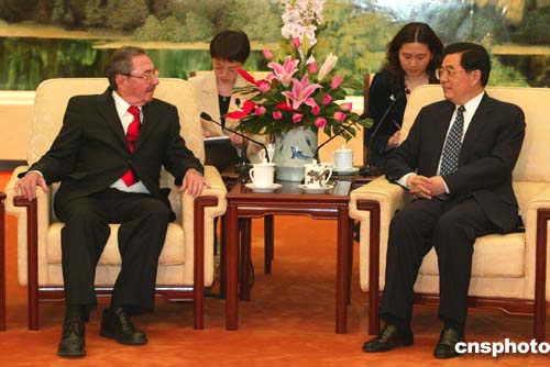 中新社北京四月十八日電(記者張朔)中共中央總書記、國家主席胡錦濤今天下午在人民大會堂會見了古共中央第二書記、國務委員會第一副主席兼部長會議第一副主席勞爾·卡斯特羅,雙方進行了親切友好的談話。