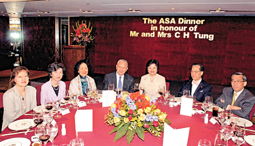 昨日的晚宴筵開二十五席,當(dāng)中被安排坐在首席的十六人,除董建華夫婦、曾蔭權(quán)夫婦外,尚包括房屋規(guī)劃及地政局局長孫明揚、政制事務(wù)局局長林瑞麟、公務(wù)員事務(wù)局局長王永平、新聞處處長蔡瑩璧、行政長官私人秘書葉文輝,以及前政務(wù)司司長陳方安生夫婦等。而一些前政府高官如吳榮奎、蕭烱柱、黃星華、藍鴻震、余黎青萍、霍羅兆貞等亦有出席。