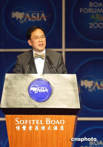 四月二十三日,博鰲亞洲論壇二○○五年年會(huì)在海南博鰲開(kāi)幕,香港特別行政區(qū)署理行政長(zhǎng)官曾蔭權(quán)發(fā)表主旨演講。作者:廖文靜