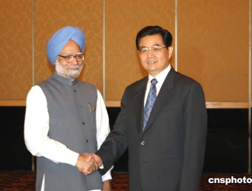 圖:中國國家主席胡錦濤會見印度總理辛格