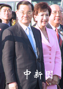 連戰夫人方瑀一下飛機,就在麥克風面前輕聲感嘆:晴空萬里。欣喜之情溢于言表。