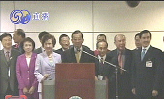連戰在臺北桃園機場發表簡短講話(電視截圖)