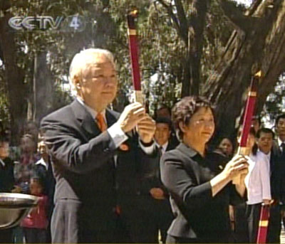 中新網(wǎng)5月6日電 親民黨主席宋楚瑜、陳萬(wàn)水夫婦今日(6日)上午,攜親民黨大陸訪(fǎng)問(wèn)團(tuán)一行在黃帝陵冢前上香祭拜。