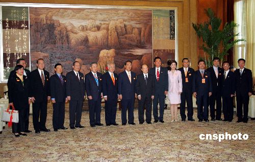 五月八日,親民黨主席宋楚瑜在上海拜會海峽兩岸關(guān)系協(xié)會會長汪道涵先生,圖為親民黨大陸訪問團(tuán)代表與汪道涵等賓客一起合影。作者:潘索菲