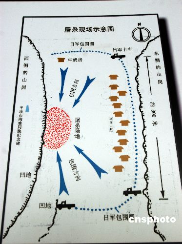 侵華日軍七十三年前制造了遼寧撫順“平頂山慘案”,八百多間房屋被燒毀、三千多中國居民被日軍野蠻的屠殺,在人類文明發(fā)展史上寫下了野蠻、殘暴、無恥的一頁。圖為平頂山慘案屠殺現(xiàn)場示意圖。作者:王麗南