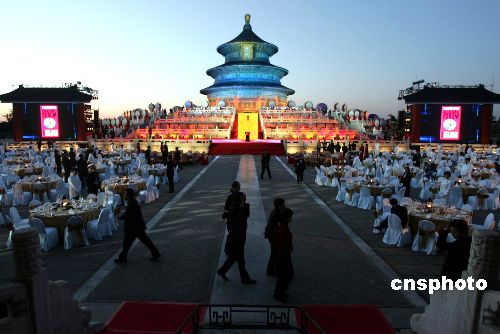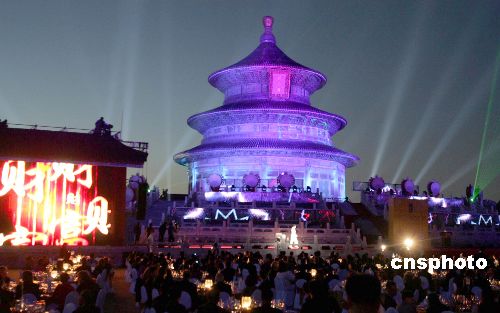 5月17日晚,北京市市長王岐山在北京天壇祈年殿前盛宴款待出席2005北京《財富》全球論壇的嘉賓。作者:任晨鳴